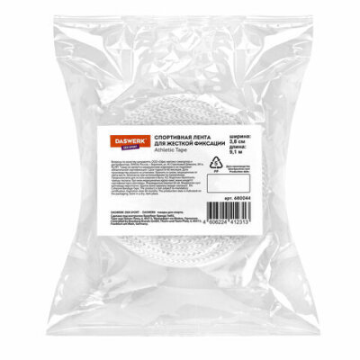Спортивный тейп защитный неэластичный для жесткой фиксации, 9,1 м х 3,8 см, 1 рулон, белый, DASWERK (ДАСВЕРК), 680044