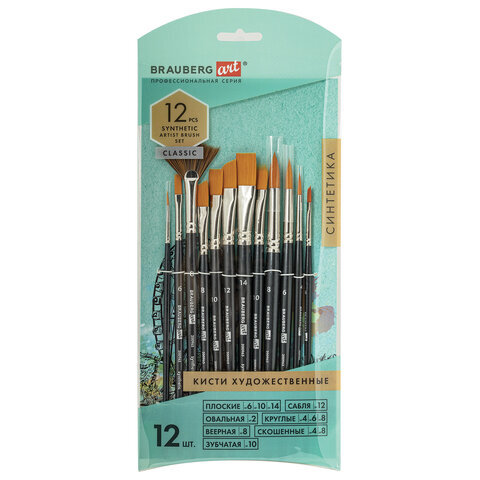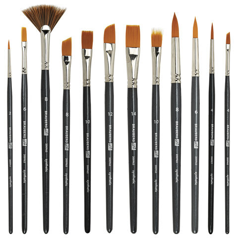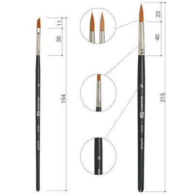 | Номер кисти | овальная № 2; веерная № 8; круглая № 4, 6, 8; скошенная № 4, 8; плоская № 6, 10, 14; сабля № 12; зубчатая № 10 |