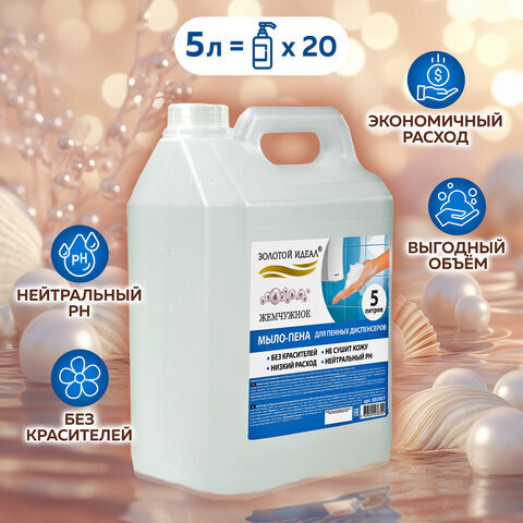 Мыло-пена для специальных диспенсеров 5 л ЗОЛОТОЙ ИДЕАЛ "Жемчужное", 605907