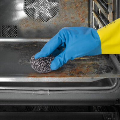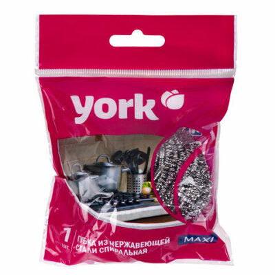 Спиральная стальная губка YORK удаляет самые сложные загрязнения с посуды, кастрюль и решеток.