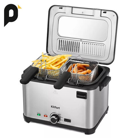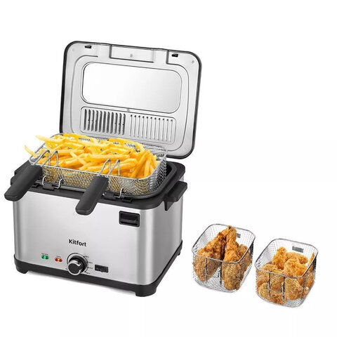 Фритюрница KITFORT KT-6240, 2000 Вт, объем 4,8 л, регулировка 130-190 °С, 3 корзинки, черная/серебристая, КТ-6240