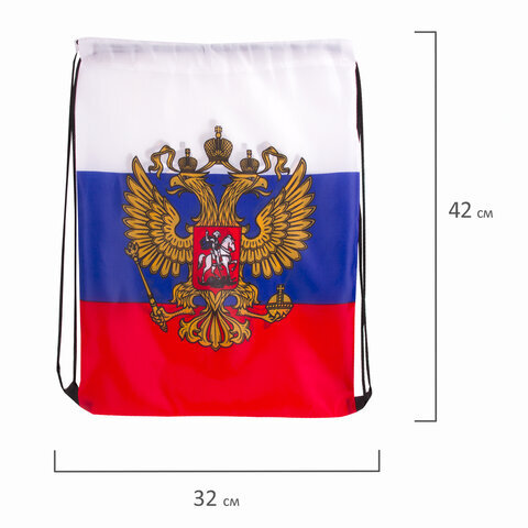 Сумка-мешок на завязках "Триколор РФ", с гербом РФ, 32х42 см, BRAUBERG/STAFF, 228328, RU37
