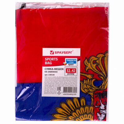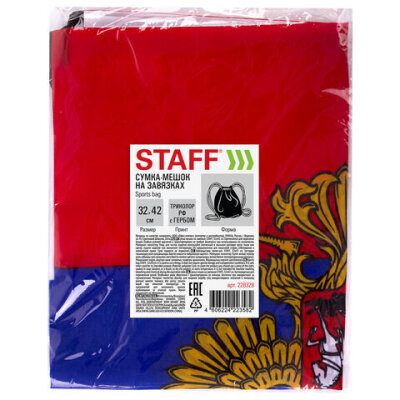 Сумка-мешок на завязках BRAUBERG/STAFF "Триколор РФ" предназначена для переноски вещей. Можно носить на плечах за спиной.