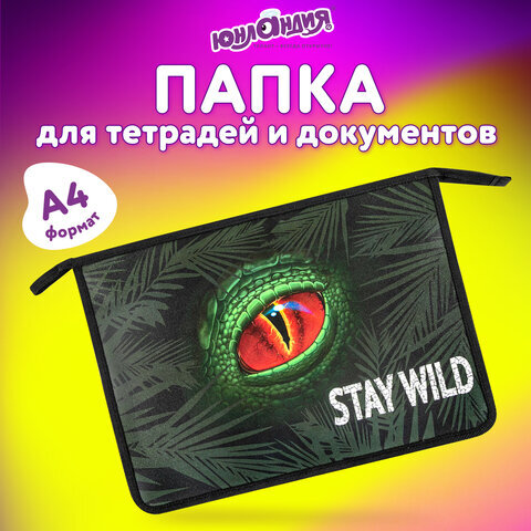 Папка для тетрадей ЮНЛАНДИЯ А4, 1 отделение, пластик, на молнии, "Stay wild", 271081
