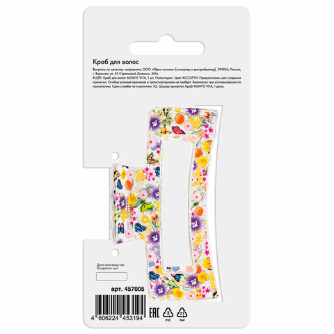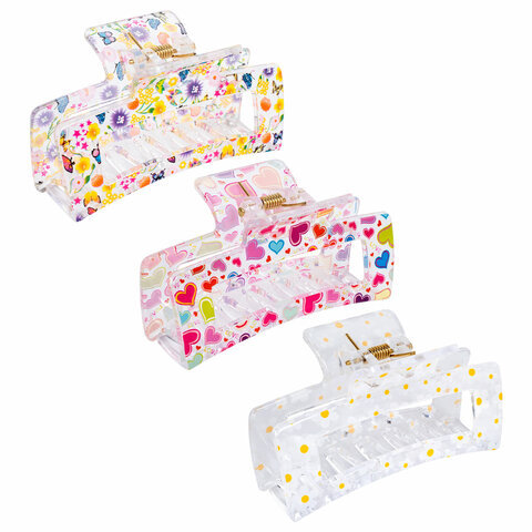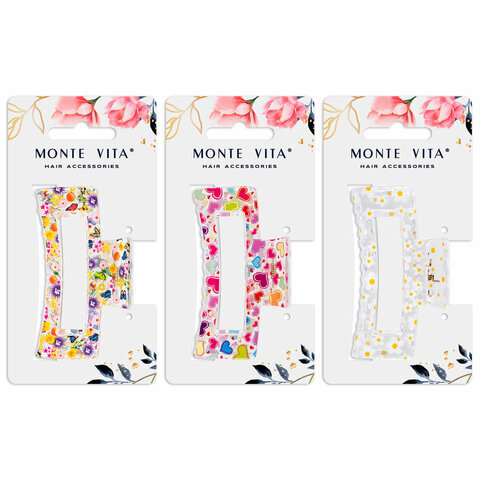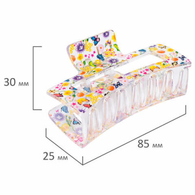 Краб для волос 8,5 см, прозрачный с рисунком, АССОРТИ, MONTE VITA (МОНТЕ ВИТА), 457005