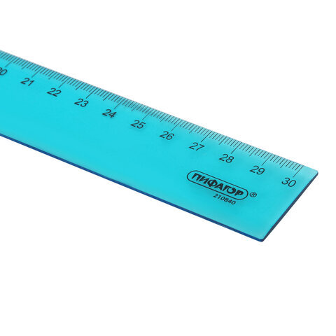 Линейка пластиковая 30 см, ПИФАГОР, прозрачная, неоновая, ассорти, 210840