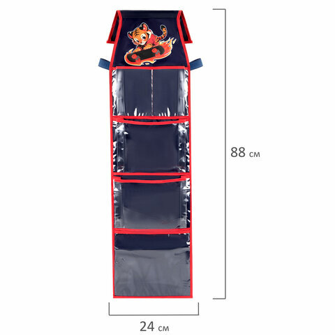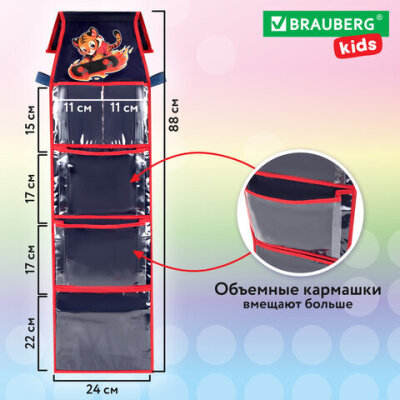 Кармашки-органайзер в шкафчик для детского сада BRAUBERG KIDS, крепление на липучке, наклейки-подсказки, 24х88 см, "Tiger", 273285