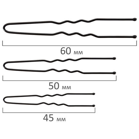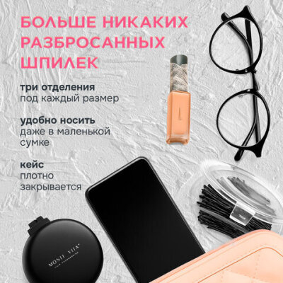 Шпильки для волос НАБОР 60 шт., 4,5 см, 5 см, 6 см, в кейсе, чёрный, MONTE VITA (МОНТЕ ВИТА), 457104
