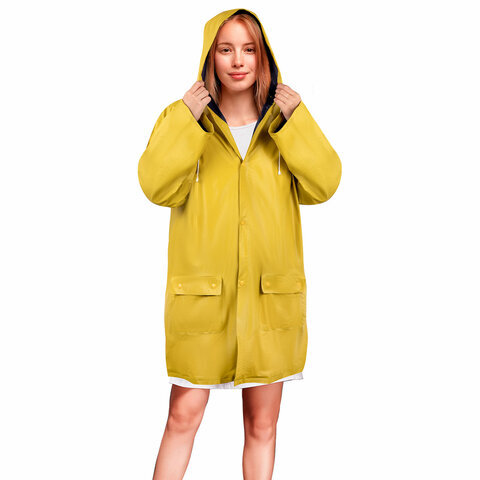 Дождевик-куртка желтая на кнопках С КАРМАНАМИ, виниловая, размер 50-56, рост 170-185, ГРАНДМАСТЕР, 610939
