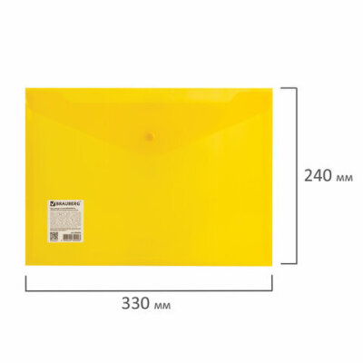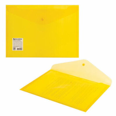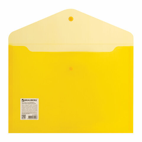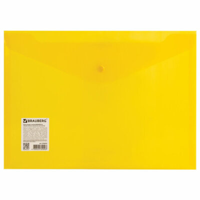 Папка-конверт с кнопкой BRAUBERG А4 до 100 л. прозрачная желтая СВЕРХПРОЧНАЯ 0,18 мм, 270472