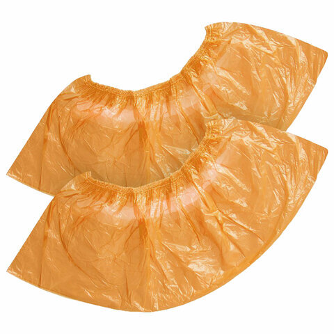 Бахилы оранжевые КОМПЛЕКТ 100 штук (50 пар) СТАНДАРТ+, размер 40х14 см, 18 мкм, 2,5 г, ELEGREEN