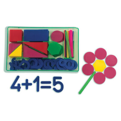 | Комплектация | геометрические фигуры, математические знаки, счетные палочки, цифры |