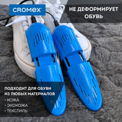 Сушилка для обуви CROMEX создана для бережного и безопасного ухода за обувью. Особая технология нагрева уничтожает неприятный запах и дезинфицирует обувь, а эргономичная форма позволяет просушить даже самые труднодоступные места.