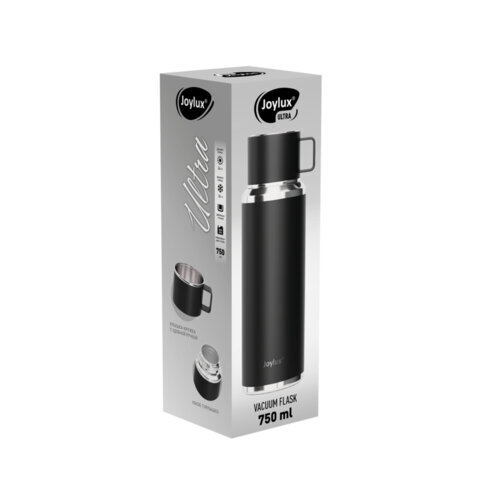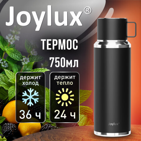 Термос 0,75 л JOYLUX (ДЖОЙЛЮКС) ULTRA, нержавеющая сталь SUS316, крышка/кружка, питейник, сито, черный матовый, 700314