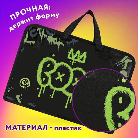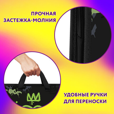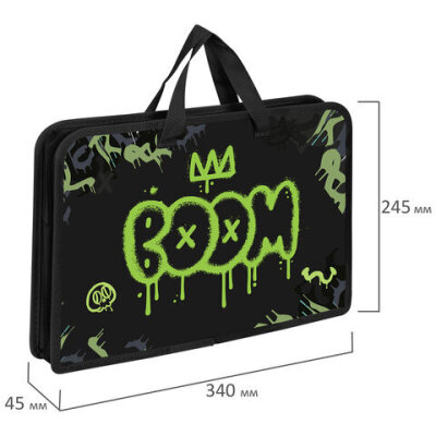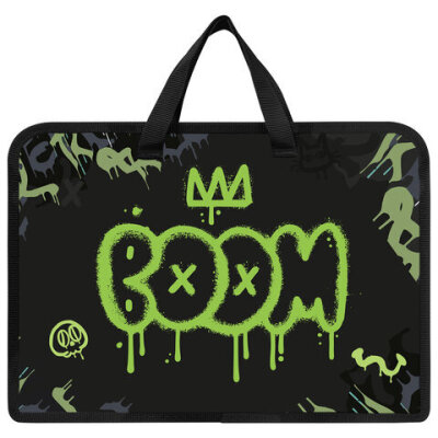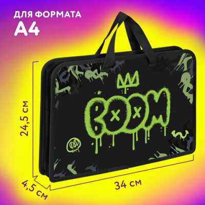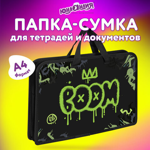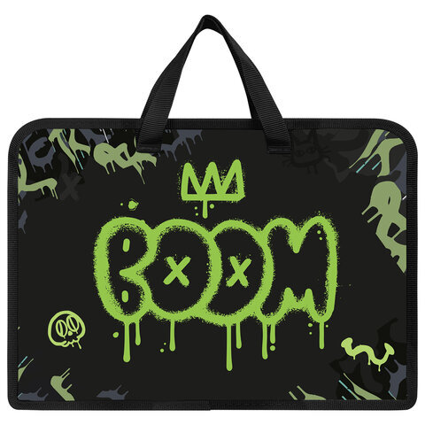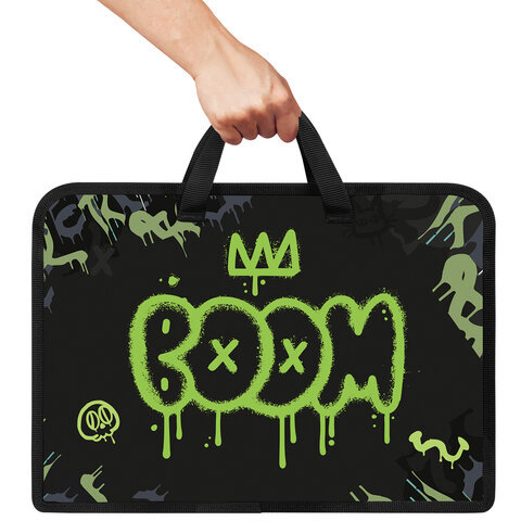 Папка на молнии с ручками ЮНЛАНДИЯ А4, 1 отделение, пластик, ширина 45 мм, "Boom", 272151