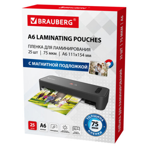 МАГНИТНАЯ пленка для ламинирования BRAUBERG надежно защитит документы от всех внешних воздействий. Благодаря магнитному слою, после ламинирования плёнку можно разместить на магнитной доске в школе, на холодильнике, или другой подходящей поверхности.