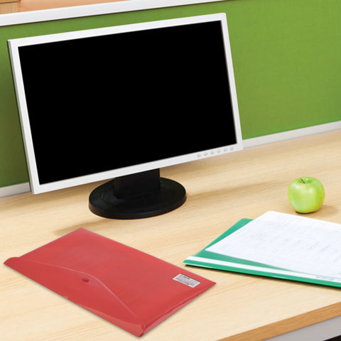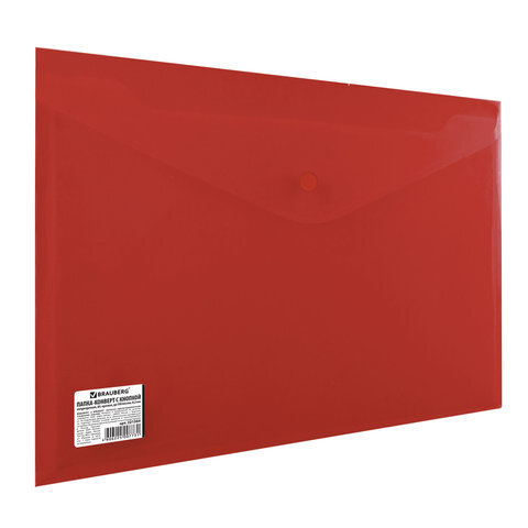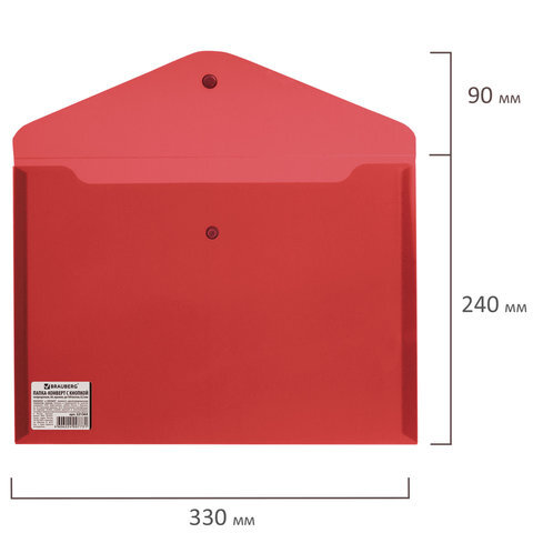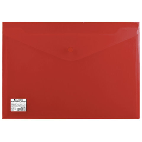 Папка-конверт с кнопкой BRAUBERG, А4, до 100 листов, непрозрачная, красная, СВЕРХПРОЧНАЯ 0,2 мм, 221364