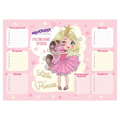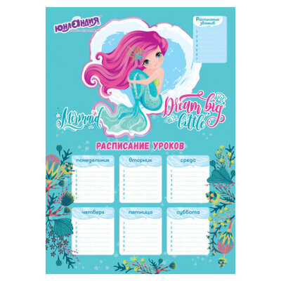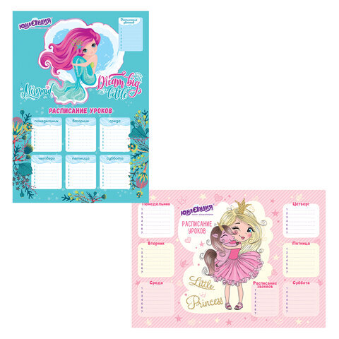 Расписание уроков и звонков А3, ЮНЛАНДИЯ, для девочек, ассорти (2 вида), 111652
