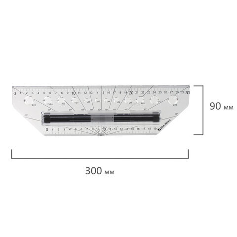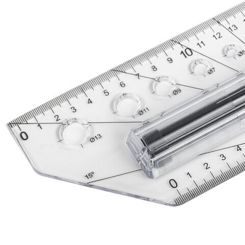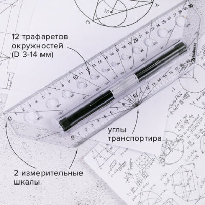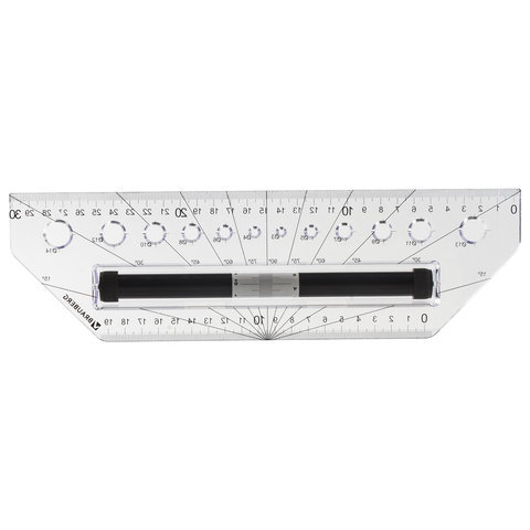 | Особенности | две измерительные шкалы, трафареты окружностей |