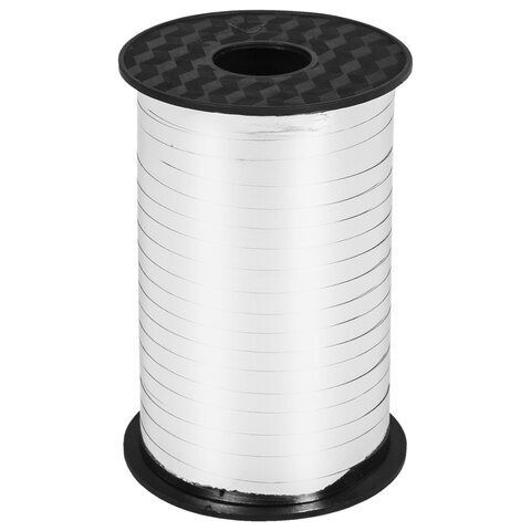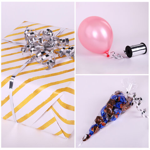 Лента упаковочная декоративная для шаров и подарков, металлик, 5 мм х 250 м, серебро, ЗОЛОТАЯ СКАЗКА, 591816