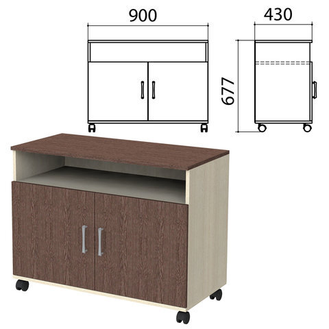 Тумба для оргтехники "Канц", 900х430х620 мм, 2 двери, цвет дуб молочный/венге (КОМПЛЕКТ)