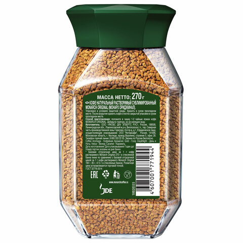 Кофе растворимый MONARCH "Original" 270 г, стеклянная банка, сублимированный, 8052852