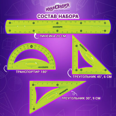 большой треугольник, линейка, малый треугольник, транспортир