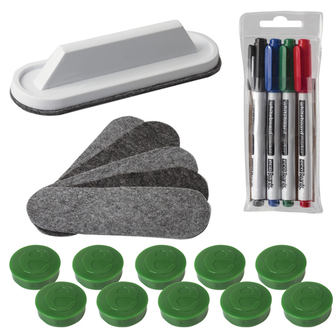 Набор обеспечивает абсолютно комфортное использование магнитно-маркерной доски и включает в себя все необходимые принадлежности.