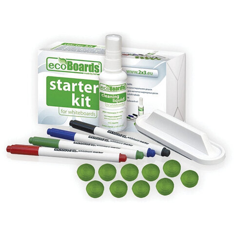 Набор для магнитно-маркерной доски (4 маркера + стиратель + чистящее средство + 10 магнитов), "2х3" ecoBoards, AS116