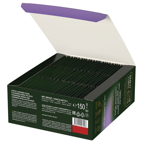 Чай CURTIS "Lavender Fleur" зеленый c лавандой, лепестками роз, 100 пакетиков в конвертах по 1,7 г, 102560