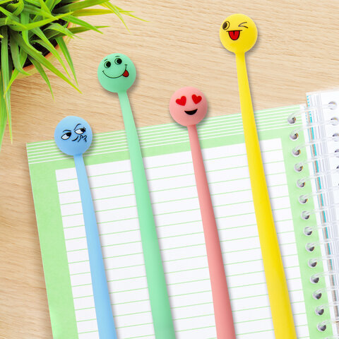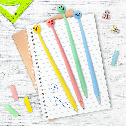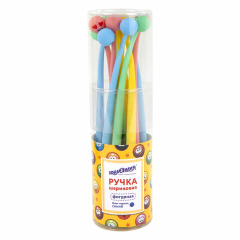 Ручка фигурная шариковая ЮНЛАНДИЯ "Смайлик", силиконовый корпус, ассорти, СИНЯЯ, пишущий узел 0,7 мм, 143793