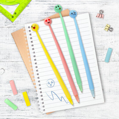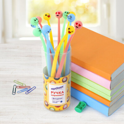 Шариковая ручка ЮНЛАНДИЯ "Смайлик" с мягким силиконовым корпусом.