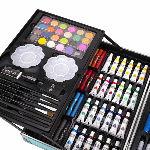 Набор юного художника ЮНЛАНДИЯ отлично подойдет для первых шагов в рисовании. В красочном кейсе есть все самые необходимые предметы для развития творческих способностей ребенка. Набор хорошо развивает усидчивость, воображение, образное мышление.