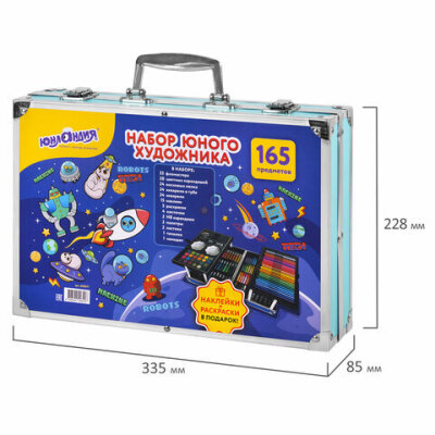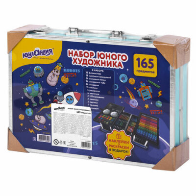 Набор ЮНОГО ХУДОЖНИКА "КОСМОС" для рисования и творчества в кейсе ЮНЛАНДИЯ, 165 предметов, 665671