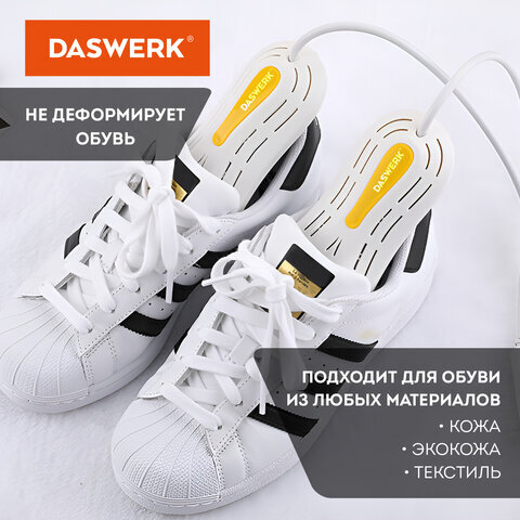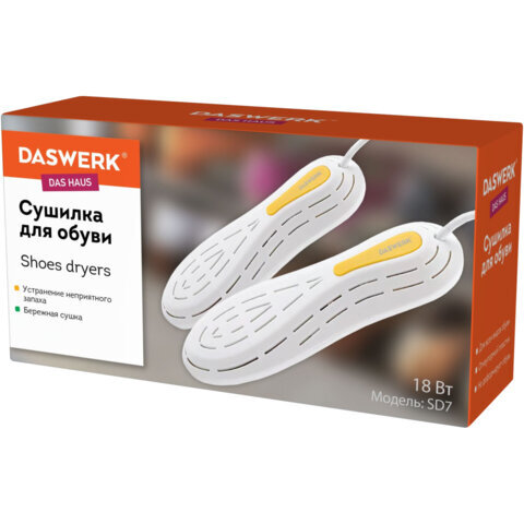 Сушилка для обуви DASWERK создана для бережного и безопасного ухода за обувью. Особая технология нагрева уничтожает неприятный запах и дезинфицирует обувь, а эргономичная форма позволяет просушить даже самые труднодоступные места.