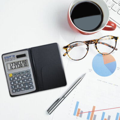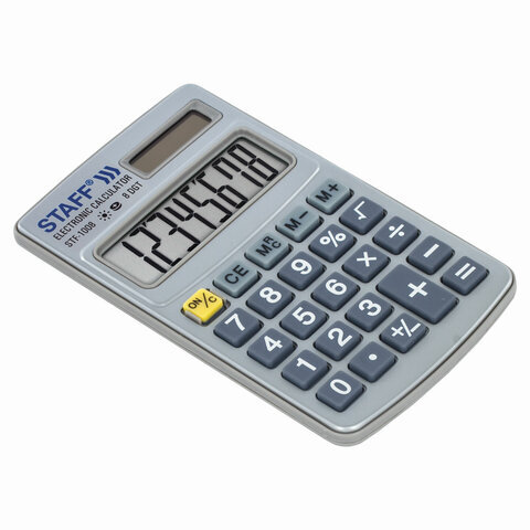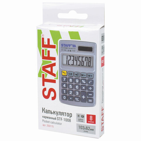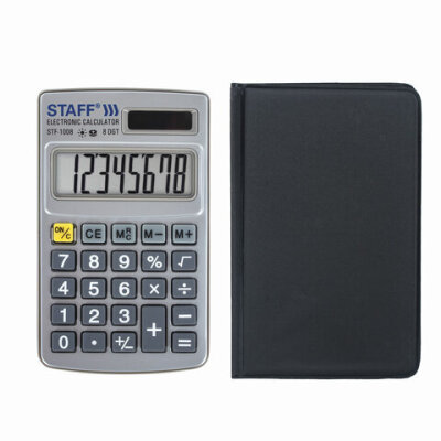 • Прочный и надёжный карманный калькулятор STAFF STF-1008 поможет выполнить базовые вычисления везде, где Вам понадобится. Калькулятор легко помещается в карман и удобно лежит в руке.