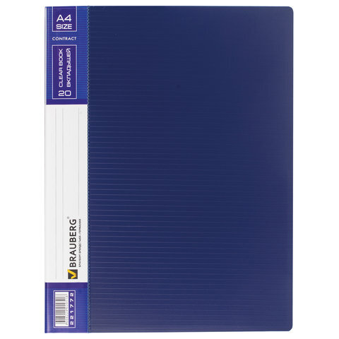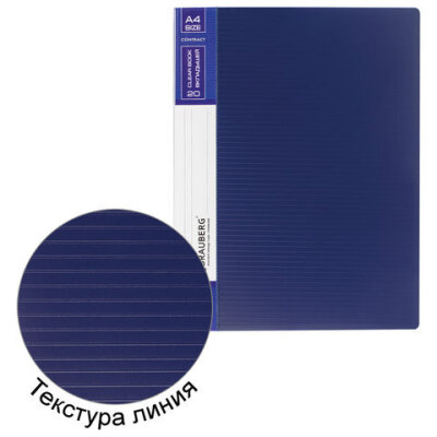 Папка 20 вкладышей BRAUBERG "Contract", синяя, вкладыши-антиблик, 0,7 мм, бизнес-класс, 221772