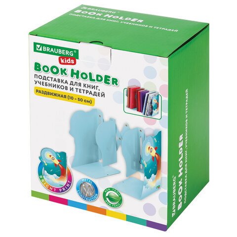 Подставка-держатель для книг и учебников фигурная BRAUBERG KIDS "Cosmo" раздвижная, металлическая, 238068