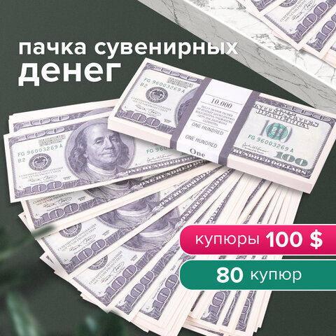 Деньги шуточные "100 долларов", упаковка с европодвесом, AD0000024
