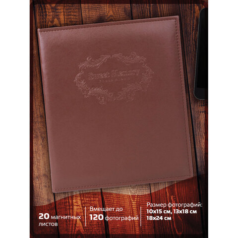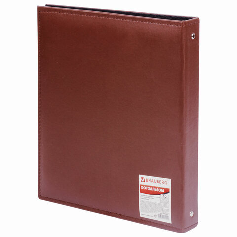 Фотоальбом BRAUBERG на 20 магнитных листов, 23х28 см, под гладкую кожу, на кольцах, коричневый, 390492