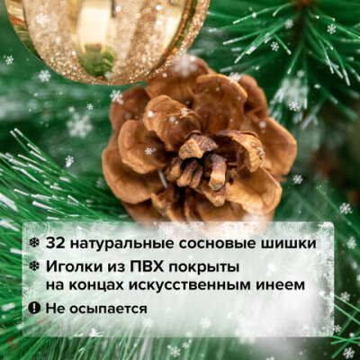 Ель новогодняя искусственная "Velvet Pinewood" 150 см, с инеем и шишками, ПВХ, ЗОЛОТАЯ СКАЗКА, 591703