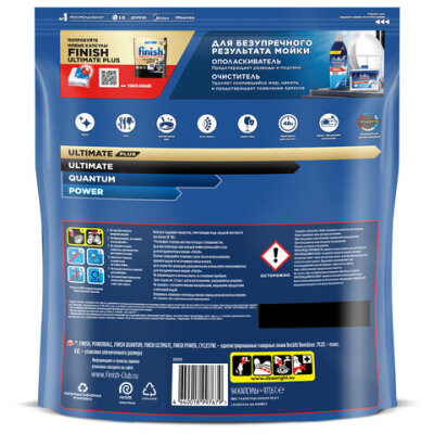 Капсулы для посудомоечных машин FINISH Quantum для глубокого очищения и ослепительного блеска вашей посуды. Не содержат фосфаты.