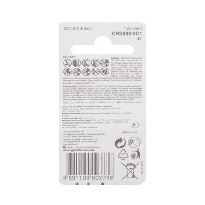 Литиевые батарейки GP размера CR2430 предоставляют высокий выходной уровень, что делает их идеально подходящими для наручных часов, фотографического оборудования, калькуляторов, компьютерного оборудования.