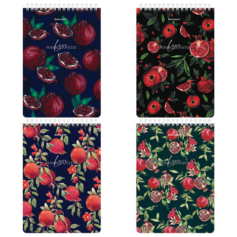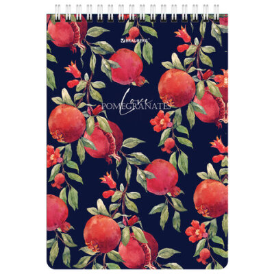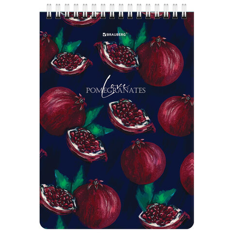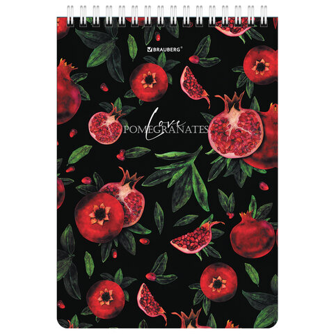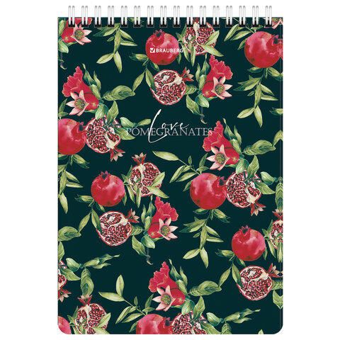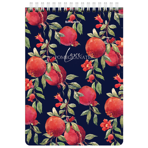 Блокнот А5 (146х206 мм), 60 л., гребень, картон, жесткая подложка, клетка, BRAUBERG, "Гранаты", 114366