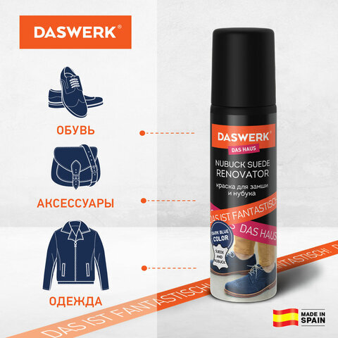 Краска для замши и нубука, 75 мл, губка, DASWERK (ДАСВЕРК), темно-синяя, 607625