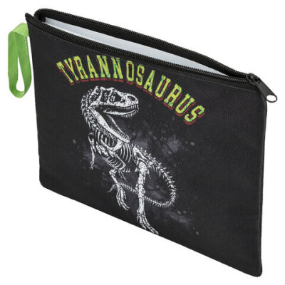 Папка для тетрадей BRAUBERG А5, 1 отделение, полиэстер, на молнии, с ручкой, "Tyrannosaur", 272203