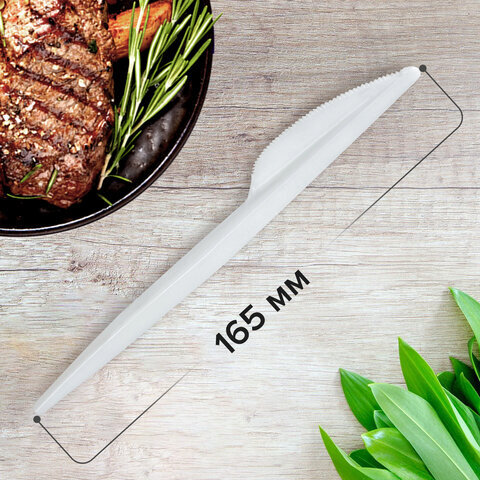 Нож одноразовый пластиковый 165 мм, белый, КОМПЛЕКТ 100 шт., СТАНДАРТ, LAIMA, 603080