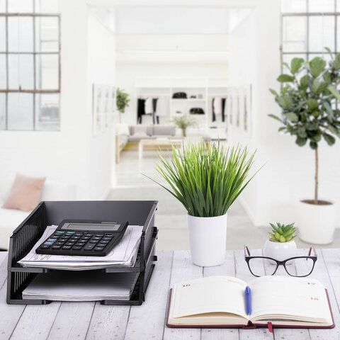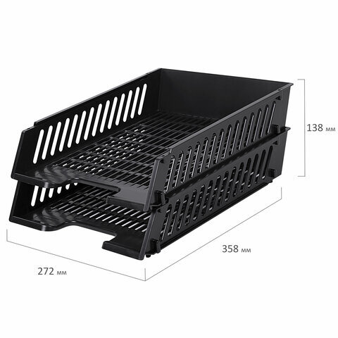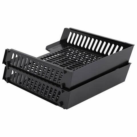 Лотки горизонтальные для бумаг, НАБОР 2 шт. (358х272х138 мм), сетчатые, черные, BRAUBERG-MAXI, 231360