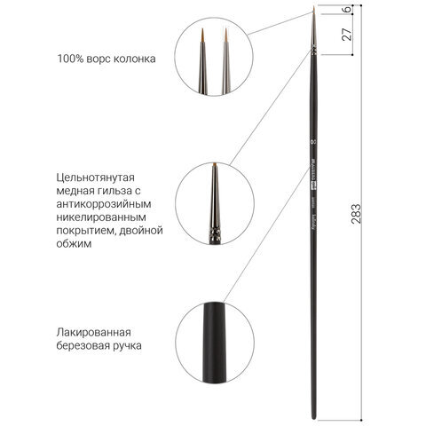 Кисть художественная проф. BRAUBERG ART CLASSIC, колонок, круглая, № 00, длинная ручка, 200920