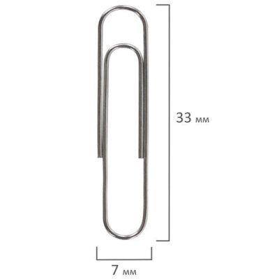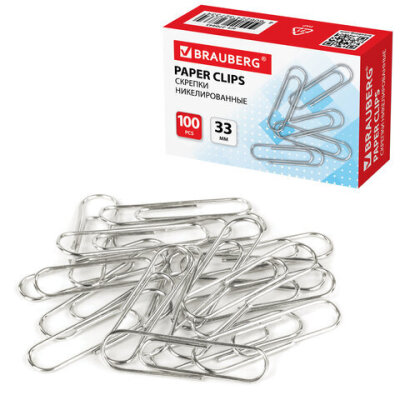 Скрепки BRAUBERG, 33 мм, никелированные, 100 шт., в картонной коробке, 270443